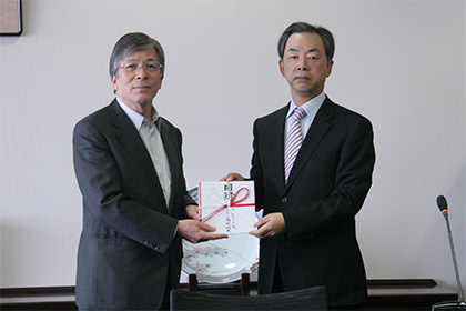 写真右:駒田美弘 様(国立大学法人 三重大学 学長)、左:大西登志和(当社常務取締役)