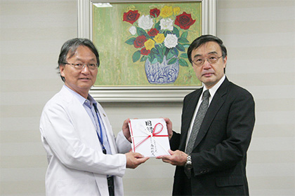 写真右:駒田美弘 様(国立大学法人 三重大学大学院医学系研究科 小児科学分野 教授)、左:大西登志和(当社常務取締役)