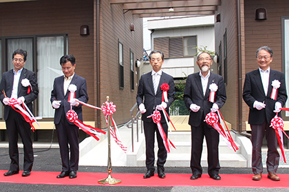 写真:完成をテープカットで祝う関係者 右から3番目:南野利久(当社代表取締役社長)