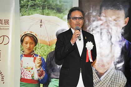 三重県総合博物館MieMu(みえむ)3階企画展示室で撮影、レセプションにて挨拶される写真家・関口照生氏