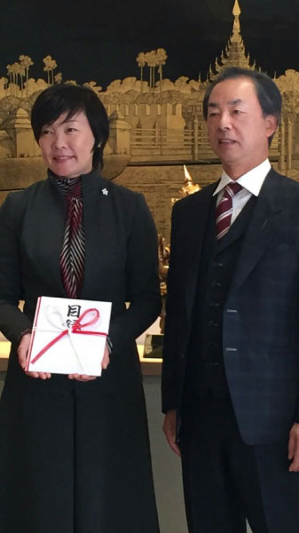 2018年2月26日(月)、一般社団法人ミャンマー祭り 名誉顧問 安倍昭恵様に、ミャンマーの寺子屋教育への支援費用を寄付させていただきました。