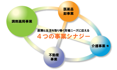 主力事業の調剤薬局事業においては、新規出店等による拡大とともに効率経営による収益力の強化に取り組んでおります。また、平成18年5月にはM&Aにて平安薬局株式会社と有限会社メデコア両社の株式を取得したことにより、神奈川県の3店舗が加わり関東圏へ進出をいたしました。