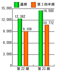 当第3四半期の連結業績は、全事業部門において計画通り好調に推移しました。結果、売上高107億72百万円(前年同期比18.2%増)、経常利益4億36百万円(前年同期比71.4%増)、当期純利益2億22百万円(前年同期比333.2%増)となりました。
