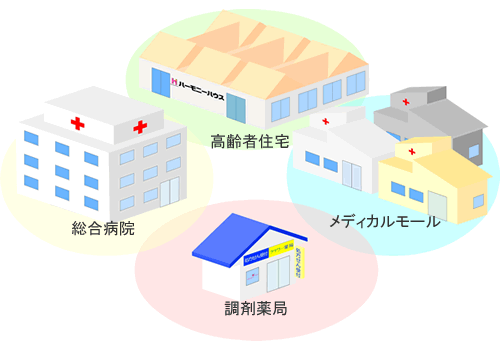 当社が目指すビジネスモデルは、医療・調剤・介護の集合体です。利便性と安心感という付加価値を追求したシナジー効果を発展させることで、医療サービスを提供する企業に求められる社会的ニーズに応え、さらなる業容の拡大を推進してまいります。
