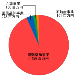 コア事業である調剤薬局事業におきましては、当期新規開局店舗の売上寄与に加え、調剤子会社及び既存店における売上が順調に推移したことにより、売上高7,426百万円(前年同期比13.6%増)、営業利益462百万円(前年同期比2.6%増)となりました。