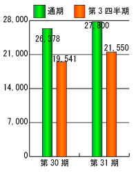 なお平成28年2月期における通期の連結業績は、売上高278億円(前年同期比5.4%増)、経常利益13億10百万円(同5.1%増)、当期純利益8億40百万円(同5.3%増)を見込んでおります。