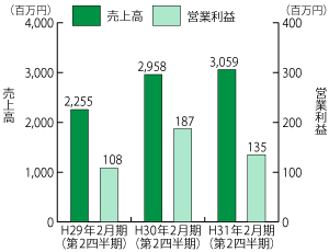 | 項目 | 2017年2月期 | 2018年2月期 | 2019年2月期 (第2四半期) |