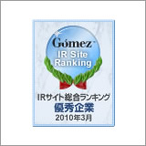 ゴメス・コンサルティング株式会社が行った「Gomez IRサイトランキング2010」において、当社サイトがIRサイト優秀企業として選定されました。また、新興市場総合ランキング6位、小売業総合ランキング5位の評価を受けました。