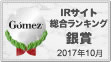ゴメス・コンサルティング株式会社が行った「Gomez IRサイトランキング2017」において、当社サイトが銀賞を受賞しました。また、新興市場ランキング3位の評価を受けました。
