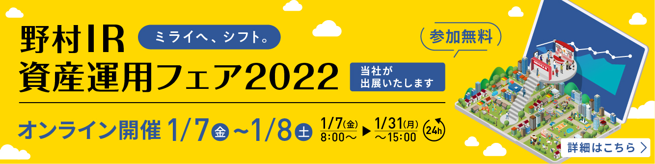 2024年1月10日(水)~13日(土)(Webサイトオープン期間は2024年1月25日(木)迄)にオンラインで開催される個人投資家様向けイベント「野村IR資産運用フェア2024」に出展致しました。