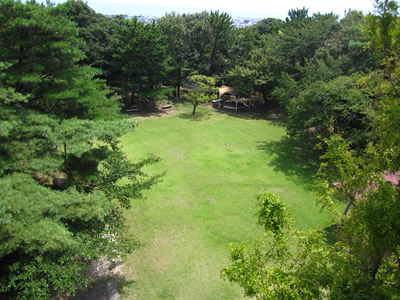現在は本城山青少年公園となり、まわりには亜天守台跡・二の丸跡、近くに武家屋敷跡があります。また、バーベキュー場やアスレチックも設置されていて家族連れで楽しむことができます。展望台や二の丸下の郭跡にある東屋(あずまや)からは伊勢湾を一望でき、晴れた日には知多半島や鈴鹿山脈を見渡せます。展望台には「江」にちなんだ歴史資料室もあり、城下に見える旧伊勢街道は趣があります。