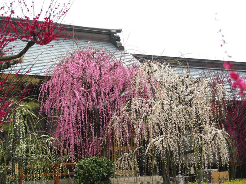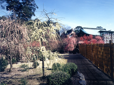 境内に咲く「しだれ梅」が有名で、2月中旬~3月上旬にはしだれ梅が約250本、白梅、紅梅が約50本咲き乱れ、シーズンには多くの見物客が訪れます。