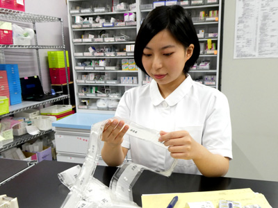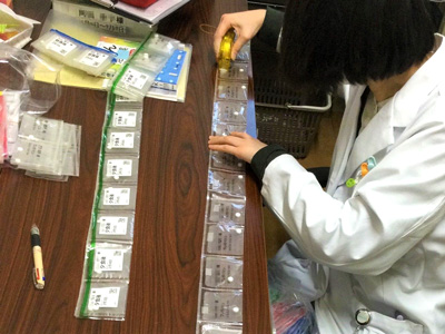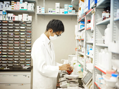 1枚の模擬処方箋に基づいて、フラワー薬局での一連の調剤業務を実地体験します。当社独自の安全対策や、フラワー薬局での仕事の進め方などについて知ることができます。