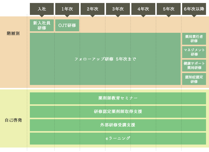 研修認定薬剤師取得支援など、充実した研修制度を確立しています。