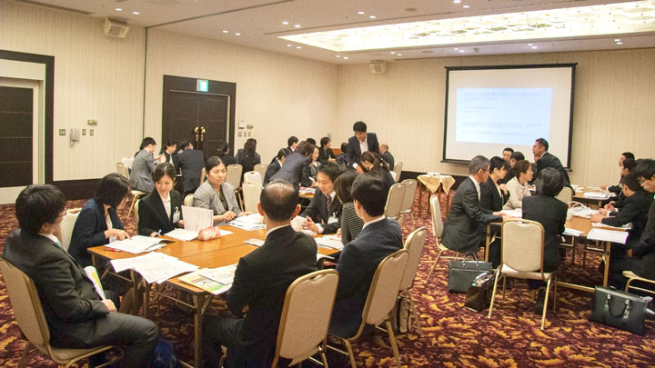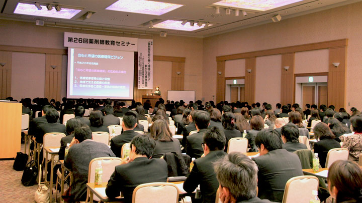 毎回300名以上が参加する、当社最大の社内研修となっています。研修認定薬剤師研修、外部講師を招いての講演会、分科会形式で行うスキルアップ研修、各店舗・各事業部による研究発表会などを行っています。同時に社員同士の交流を図る貴重な情報交換の場でもあります。