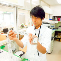 日常は、調剤薬局の薬剤師として処方鑑査から服薬指導まで一連の業務を行っていますが、特に鑑査・投薬に注力しています。鑑査では、常に疑問を持ちながら1つ1つ確実にチェックすることを第一に考えています。投薬では、患者さまとのコミュニケーションを大切にして最適な服薬指導ができるように心掛けています。また薬局長としては、スタッフの勤務調整・いつもお世話になっている門前病院との情報交換・医薬品の在庫管理など多岐に渡った仕事をしています。