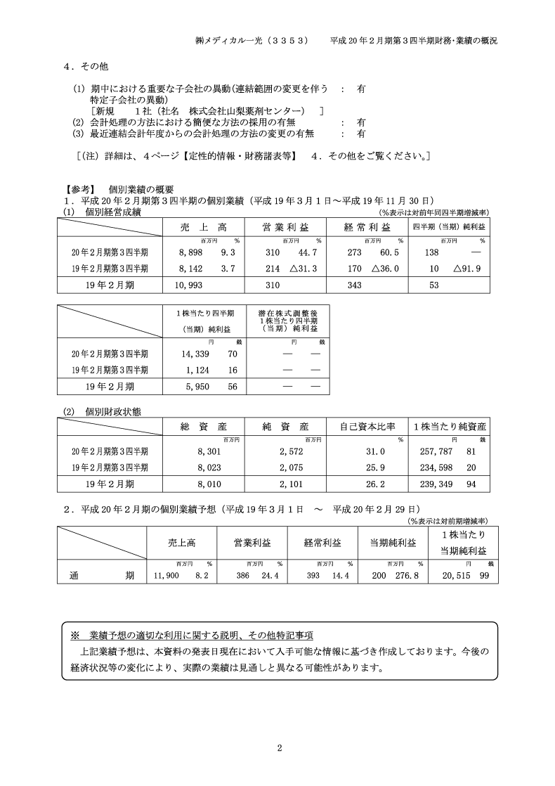 平成20年2月期 第3四半期財務・業績の概況 p2