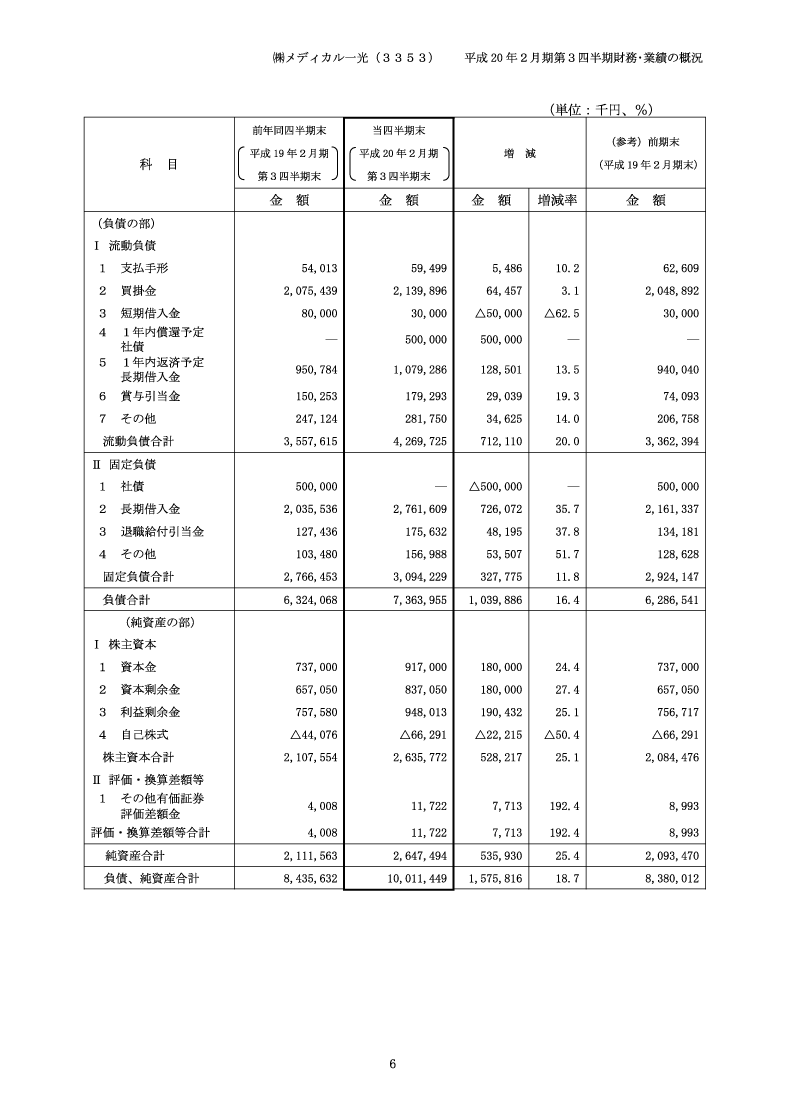 平成20年2月期 第3四半期財務・業績の概況 p6