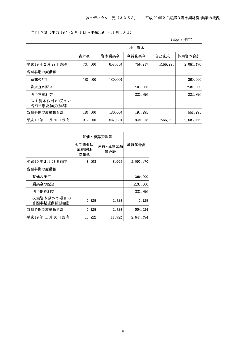 平成20年2月期 第3四半期財務・業績の概況 p9