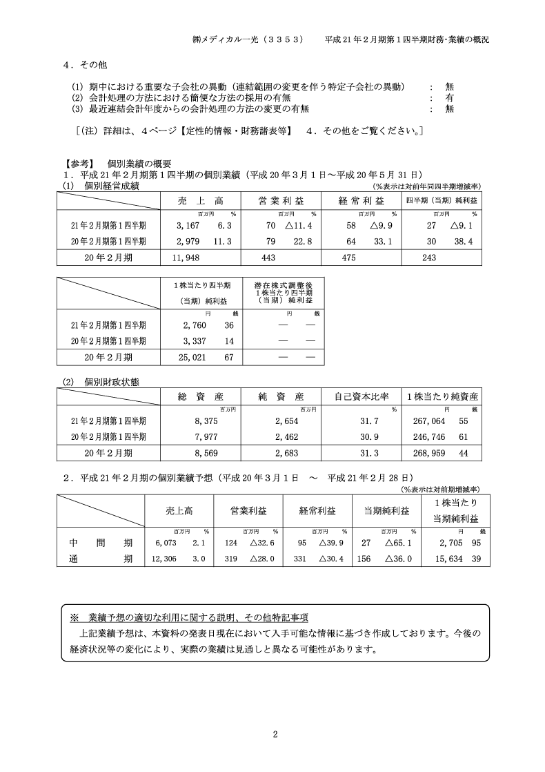 平成21年2月期 第1四半期財務・業績の概況 p2