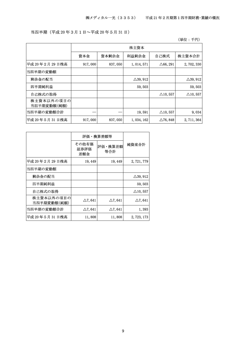 平成21年2月期 第1四半期財務・業績の概況 p9