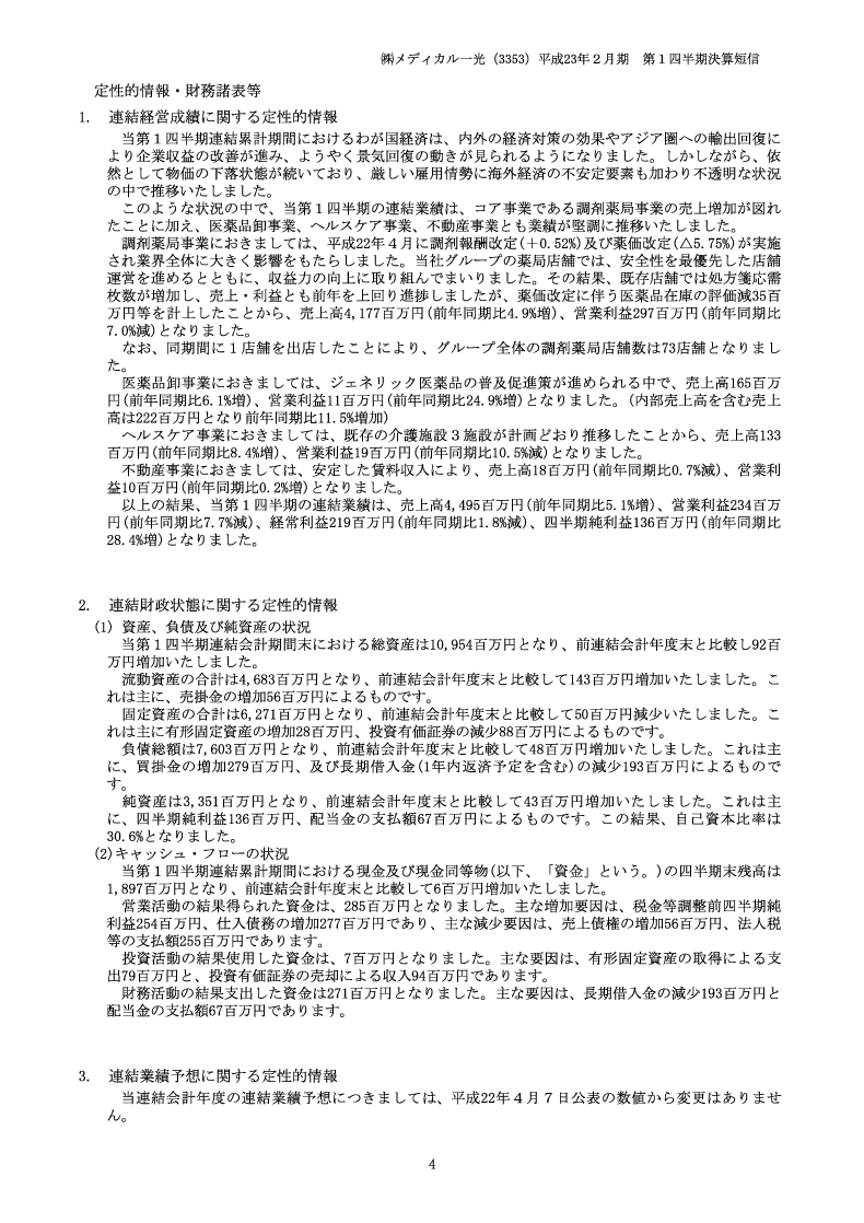 平成23年2月期 第1四半期決算短信 定性的情報・財務諸表等