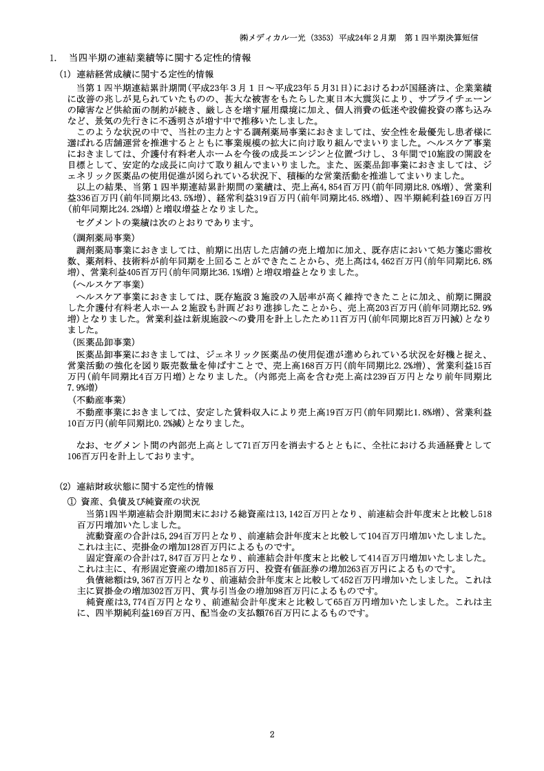平成24年2月期 第1四半期決算短信 定性的情報・財務諸表等