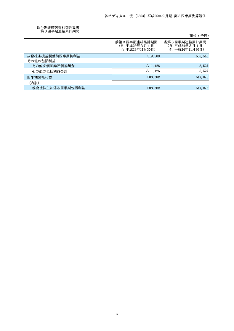 第28期第3四半期決算短信 包括利益計算書