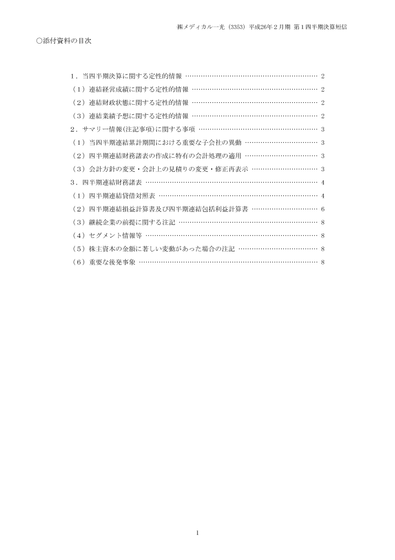 平成26年2月期 第1四半期決算短信 添付資料の目次