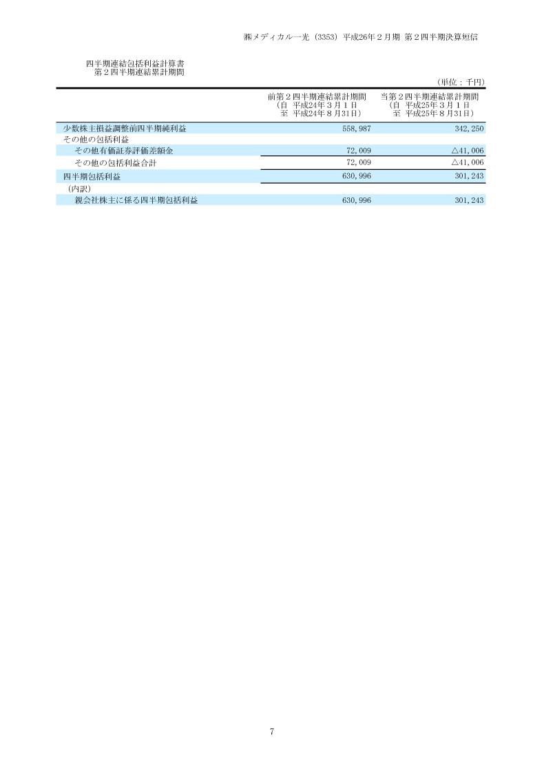 平成26年2月期 第2四半期決算短信 包括利益計算書