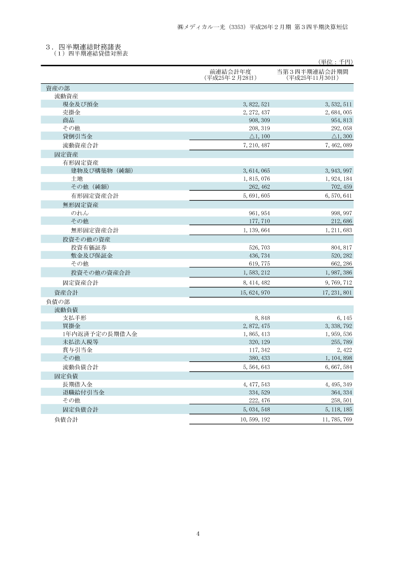 平成26年2月期 第3四半期決算短信 貸借対照表