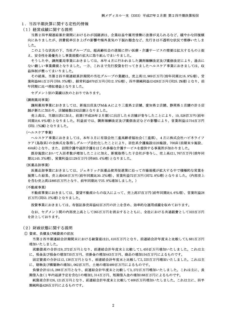 平成27年2月期 第2四半期決算短信 定性的情報・財務諸表等