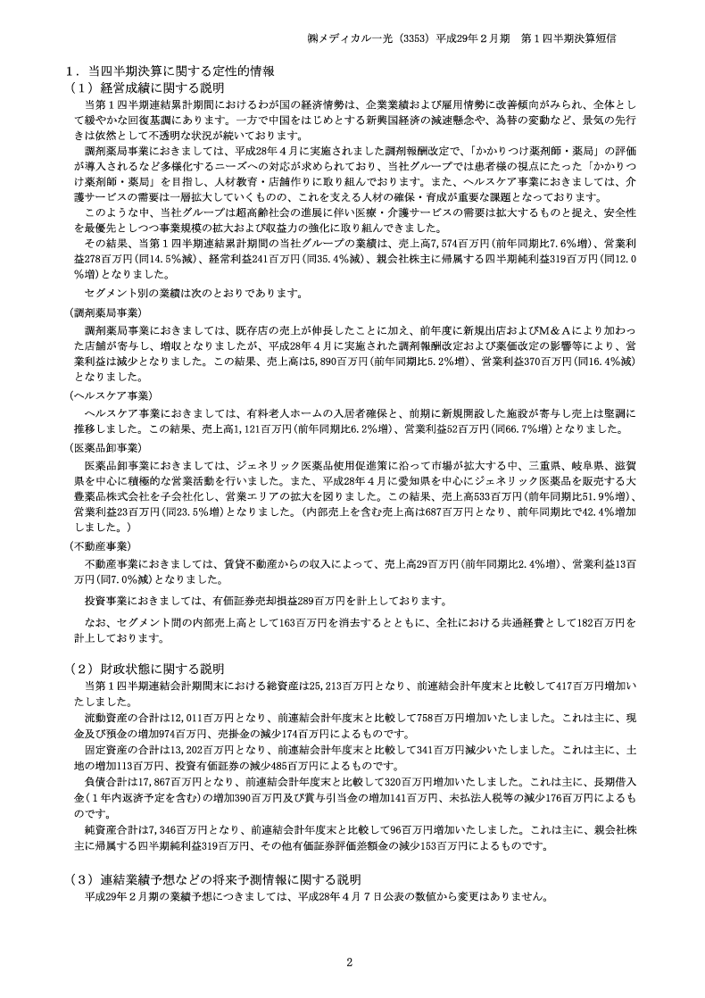 第32期 第1四半期決算短信 定性的情報・財務諸表等
