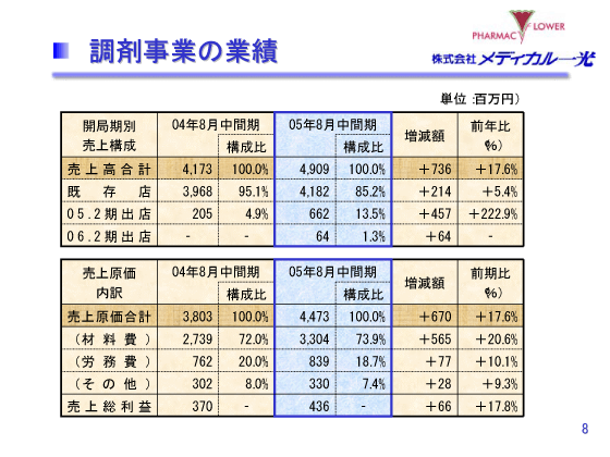 2006年2月期 中間決算説明会 調剤事業の業績