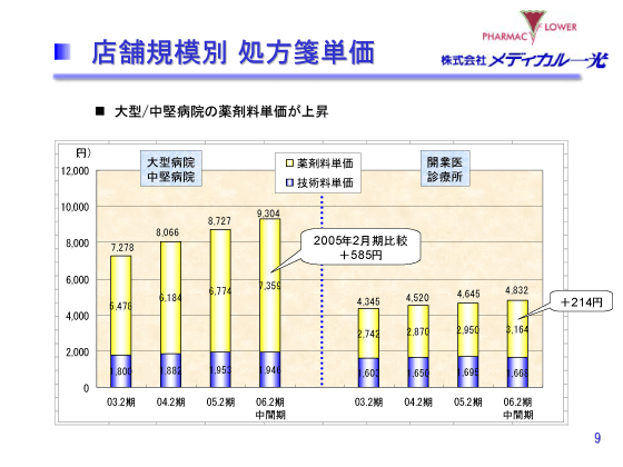 2006年2月期 中間決算説明会 店舗規模別 処方箋単価