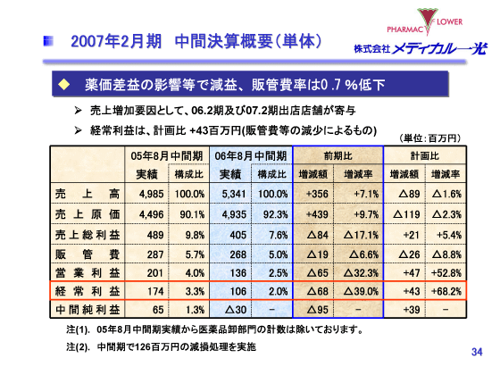 2007年2月期 中間決算説明会 2007年2月期 中間決算概要(単体)