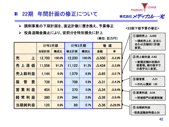2007年2月期 中間決算説明会 22期 年間計画の修正について