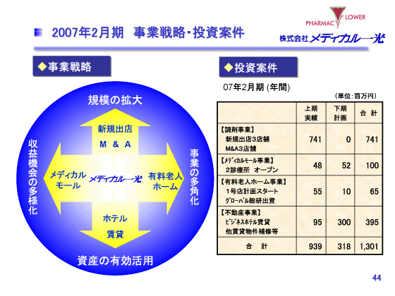 2007年2月期 中間決算説明会 2007年2月期 事業戦略・投資案件