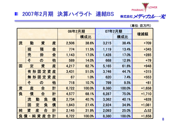 2007年2月期 決算説明会 2007年2月期 決算ハイライト 連結BS