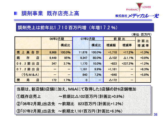 2007年2月期 決算説明会 調剤事業 既存店売上高