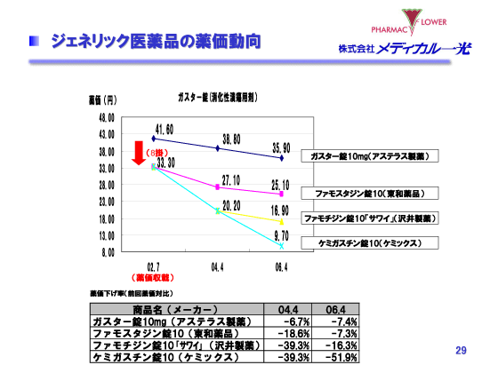 2008年2月期 中間決算説明会 ジェネリック医薬品の薬価動向