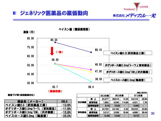 2008年2月期 中間決算説明会 ジェネリック医薬品の薬価動向