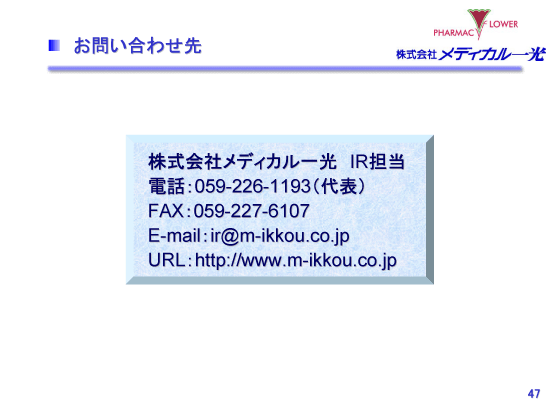 2008年2月期 中間決算説明会 お問い合わせ先