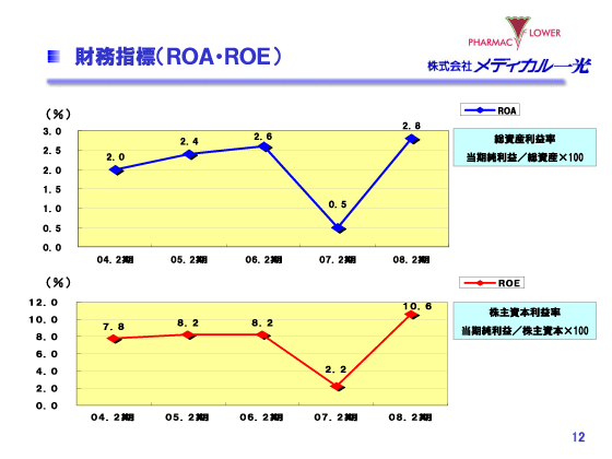 2008年2月期 決算説明会 財務指標(ROA・ROE)