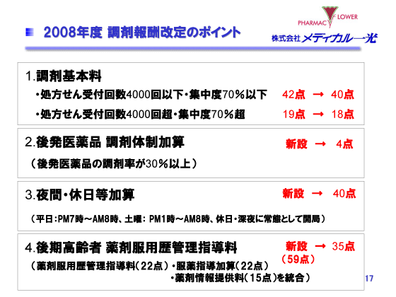 2008年2月期 決算説明会 2008年度 調剤報酬改定のポイント