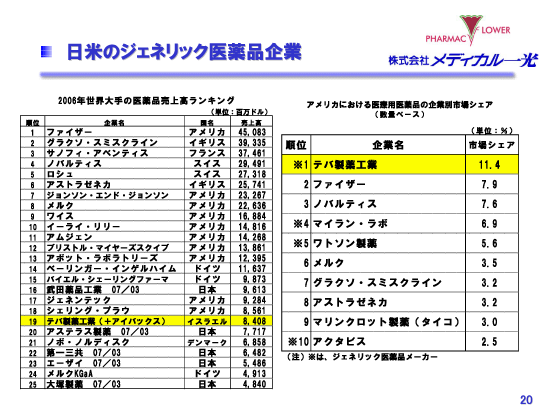 2008年2月期 決算説明会 日米のジェネリック医薬品企業