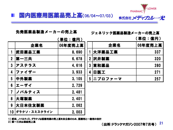 2008年2月期 決算説明会 国内医療用医薬品売上高(06/04~07/03)