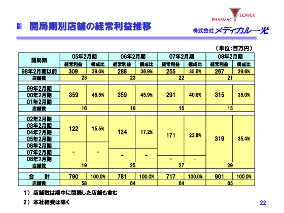 2008年2月期 決算説明会 開局期別店舗の経常利益推移