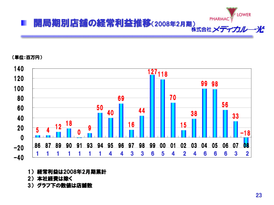 2008年2月期 決算説明会 開局期別店舗の経常利益推移(2008年2月期)
