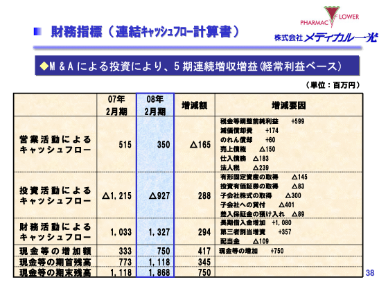 2008年2月期 決算説明会 財務指標(連結キャッシュフロー計算書)